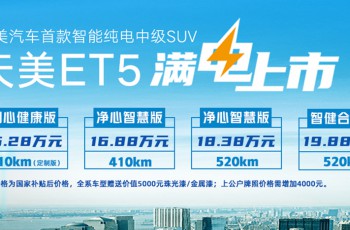 天美汽车ET5上市 补贴后售价15.28万起