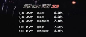 江淮瑞风S3正式上市 售6.58-8.48万元