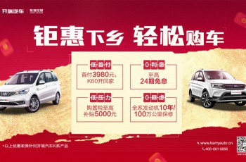 开瑞汽车惠民下乡直补,K60首付3980开回家