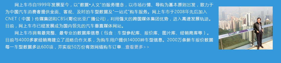 充分利用网络媒体优势,传播的内容形式多样;即时性强,可以滚动报道,即时更新;与受众之间能够比较充分实现互动;通过网络媒体对汽车市场作相关分析报道,为广大市民搭建一个深入了解汽车市场的平台,通过现场对车辆的展示...详细内容>>
